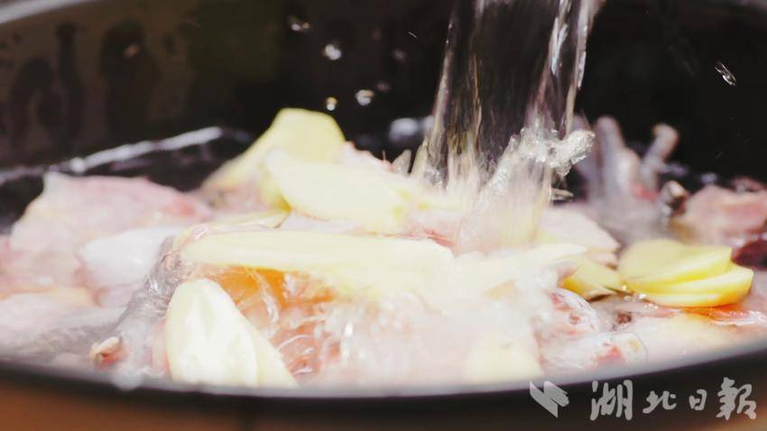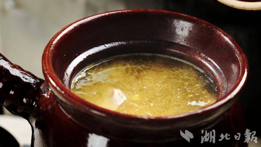 忙碌的厨房里,一碗碗香气浓郁的鸡汤要经过宰杀脱毛、漂洗、切块、焯水、吊汤、炒制等工序,最后装入瓦罐,将瓦罐放到炉子上,熬制5-6小时,才能端上食客们的餐桌。如今,“汪集鸡汤”已成为非物质文化遗产项目之一,而熬出每一碗汤的后厨师傅们,有个统一的名字——“利博汪集鸡汤制作师”。