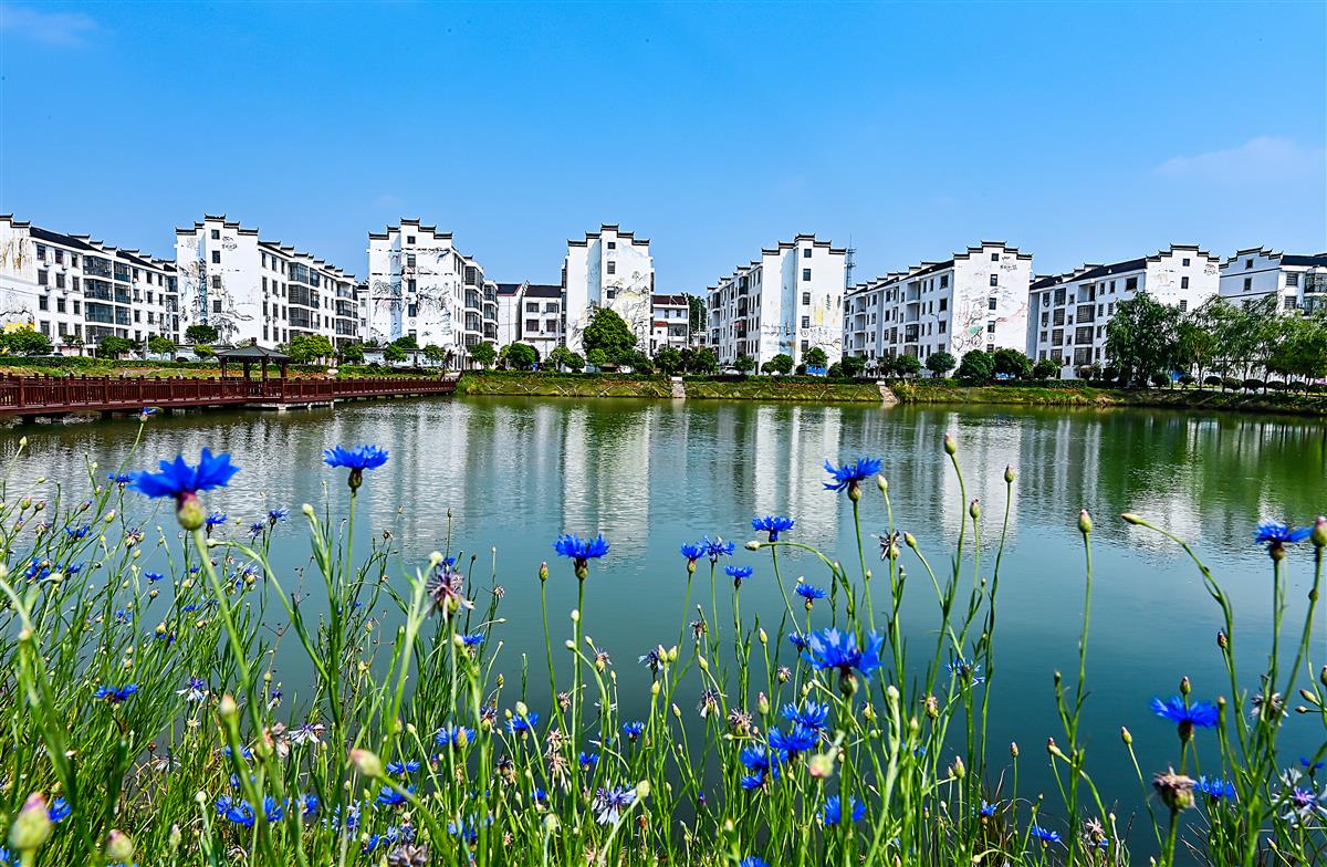 5月12日,鸟瞰利博官网 仓埠街道项山村,青山绿水、白墙黑瓦、旷野湖泊,仿佛身处一幅水墨画中。